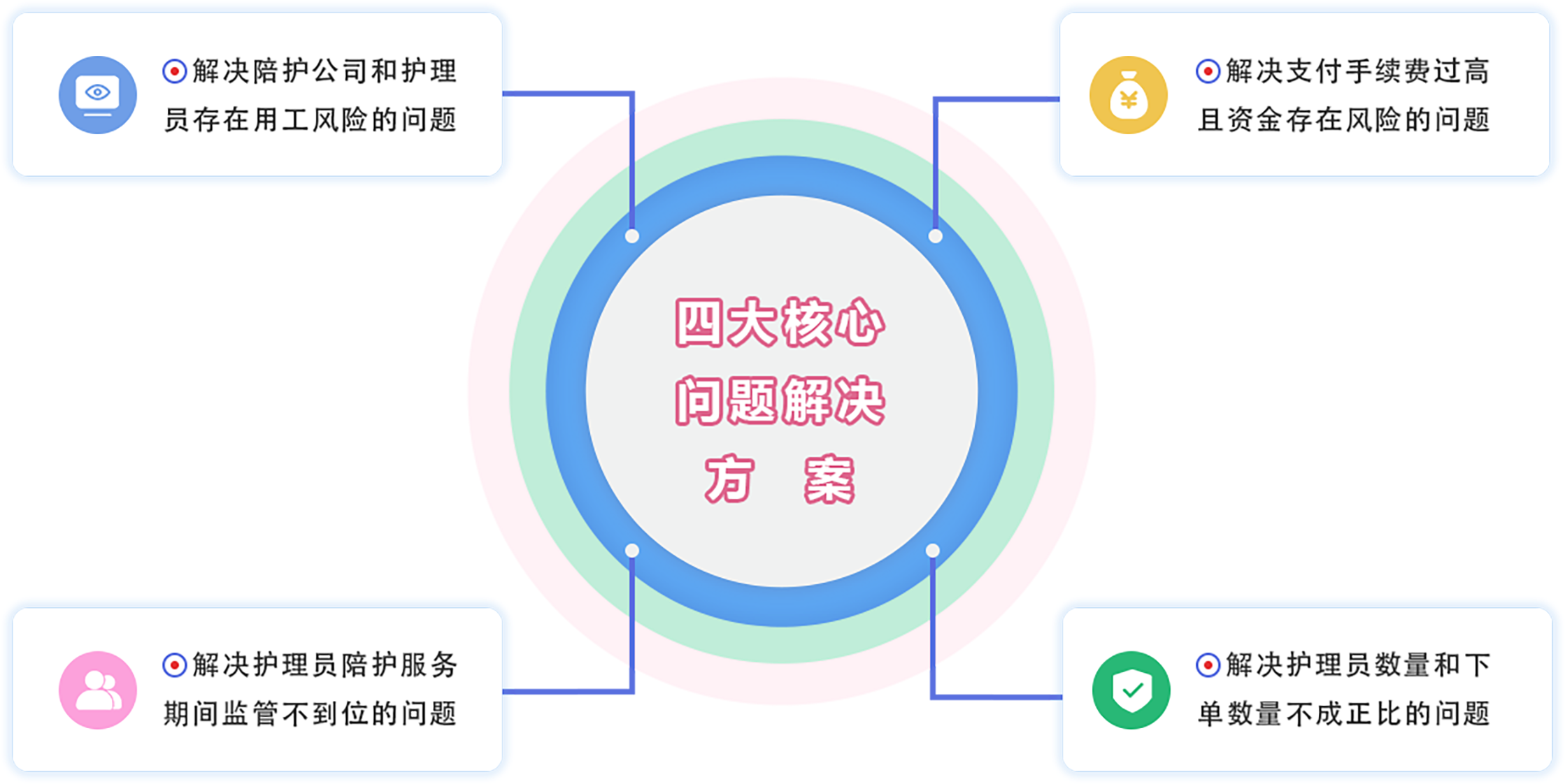 以陪护公司为主体申请商户号,创建自己的支付体系,服务费直接进入自己公司账号